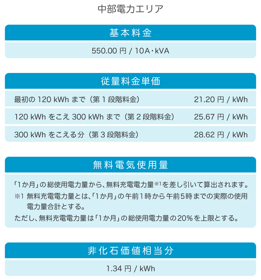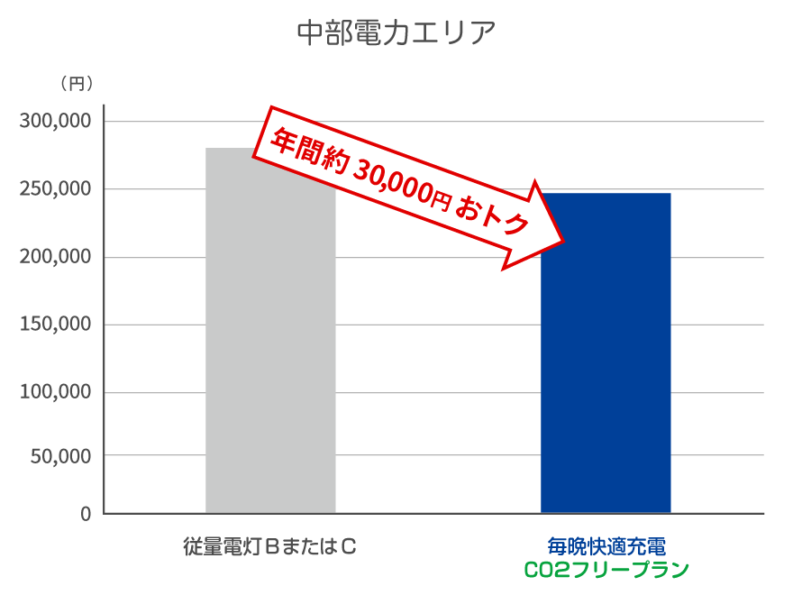 ・中部電力ミライズ株式会社の従量電灯BまたはCメニューと当社毎晩快適充電プランとの比較