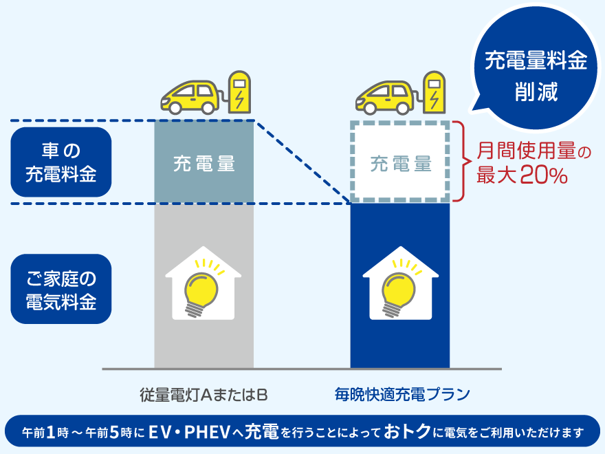 ・本プランを上手にご利用いただくことで、EV・PHEVへの充電にかかる電気料金を抑えることができます。