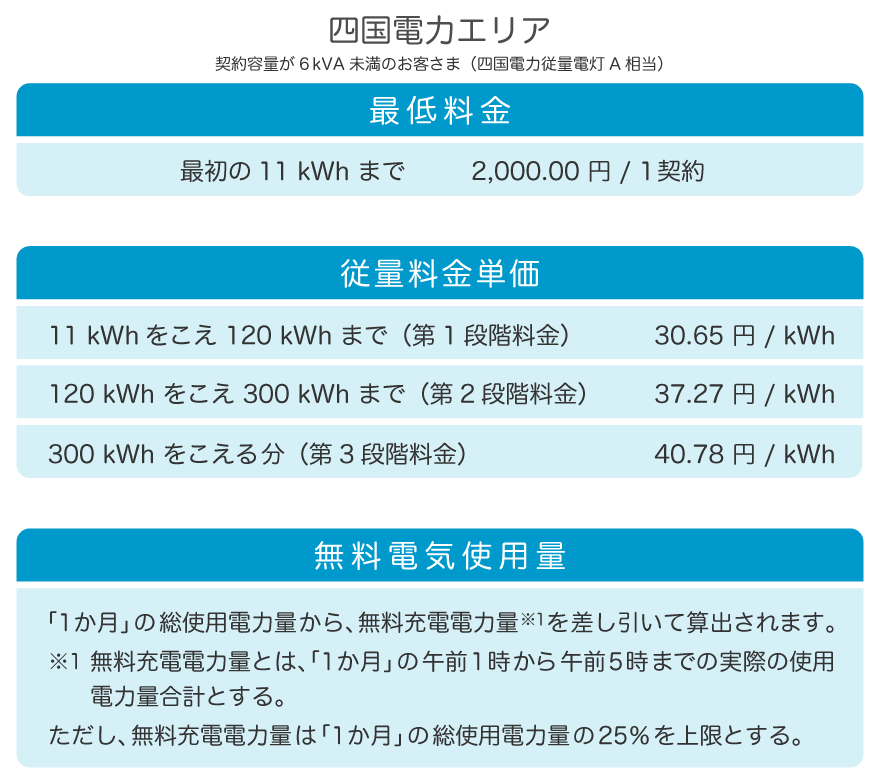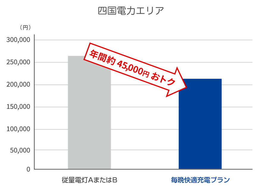 ・四国電力株式会社の従量電灯AまたはBメニューと当社毎晩快適充電プランとの比較
